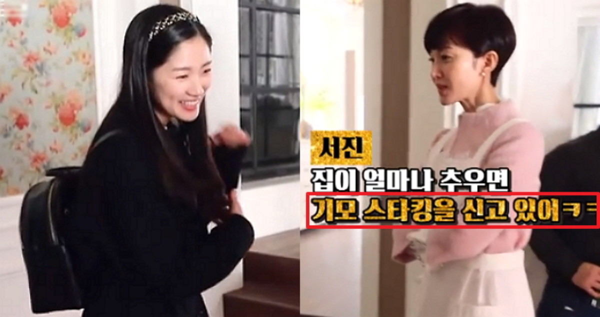 염정아는 마주 선 김혜윤의 옷을 한번 쭉 훑더니 "집이 얼마나 추우면 기모 스타킹을 신고 있어"라고 장난스럽게 말했다.