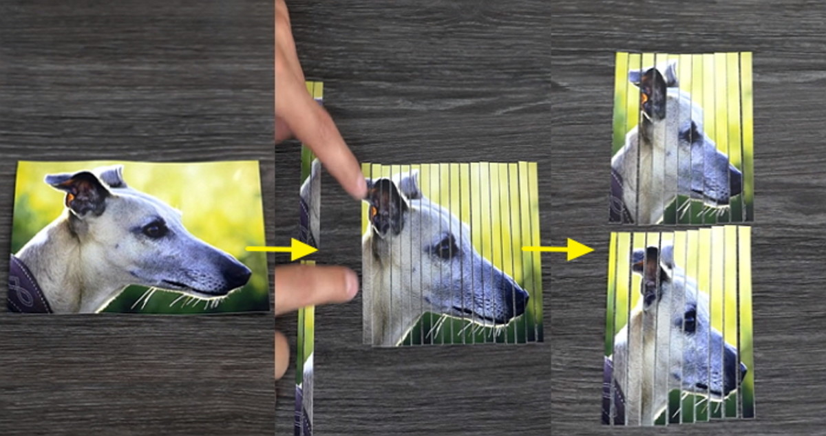 그러자 조각나기 전 모습과 똑같은 두 장의 강아지 사진이 완성된다.