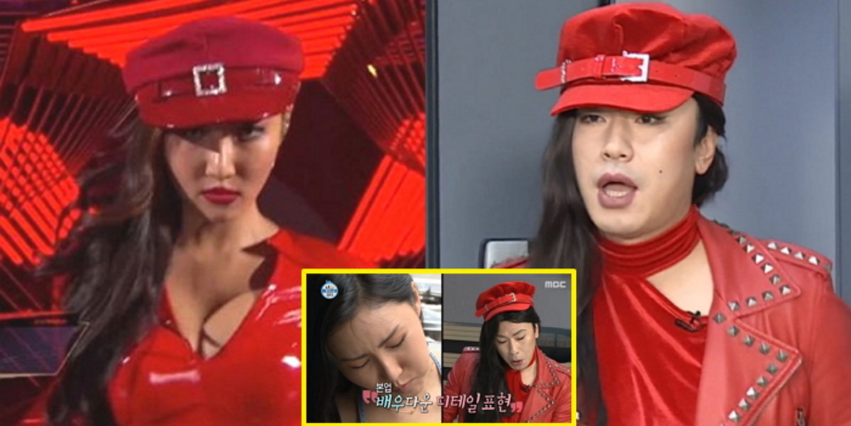 그는 진한 화장과 육각모자, 화사의 매력점 등 포인트를 살린 패러디로 싱크로율(?)을 높였다.