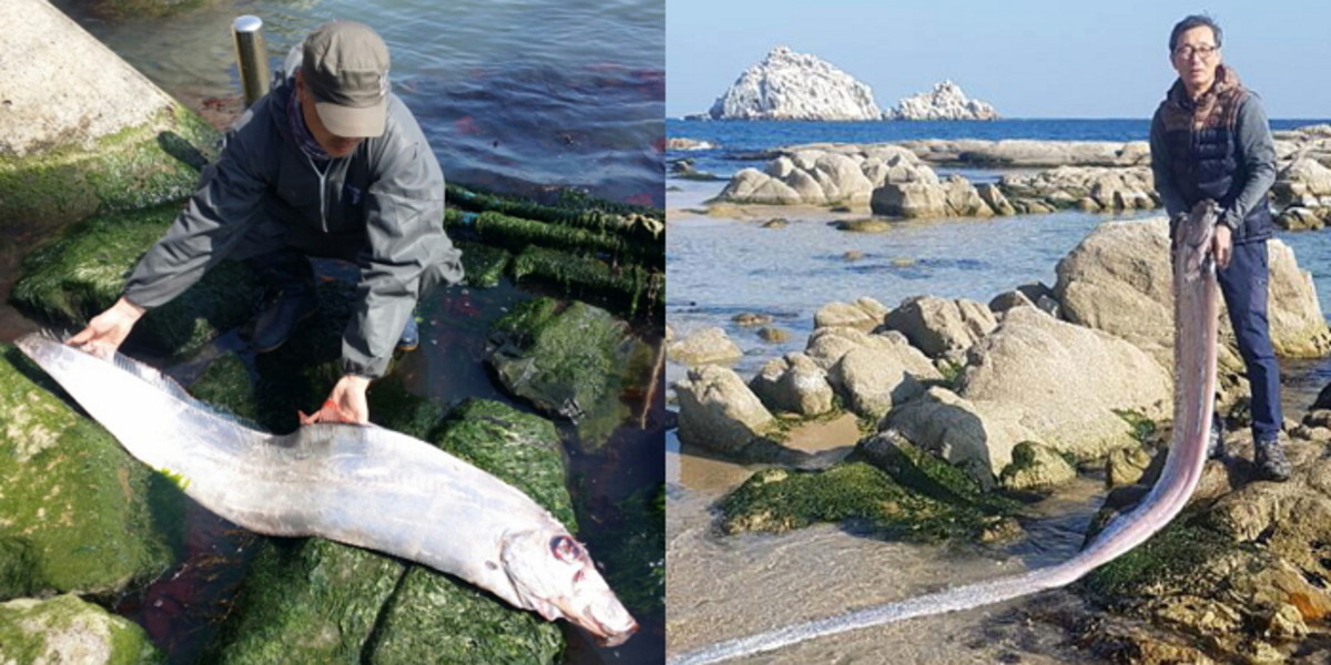 심해어 중 하나인 대형 산갈치. 이에 앞서 지난해 12월 강릉 경포 해안에서는 전설의 심해어로 알려진 1.5m짜리 투라치가 발견되기도 했다.