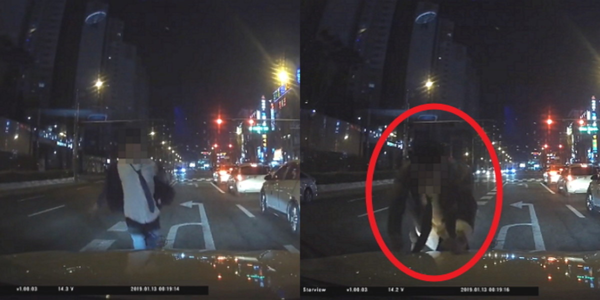 A씨에 따르면 이날 가족들과 찜질방을 다녀오는 길에 한 취객이 갑자기 차 앞으로 뛰어들었다고 한다.