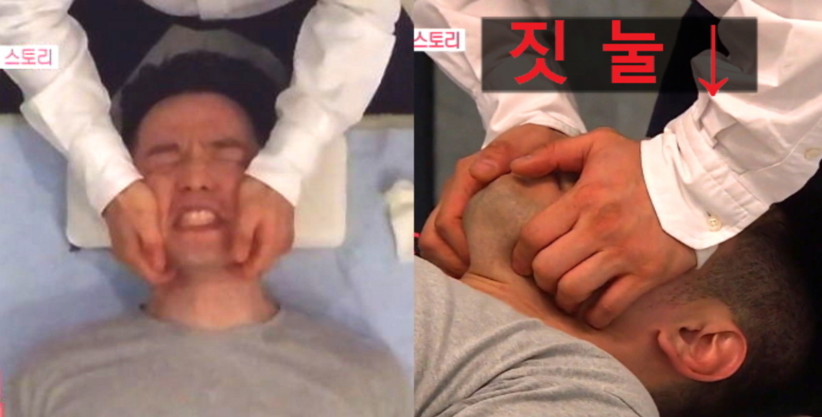 김무열 마사지사가 손바닥으로 광대를 짓누르자 신영수는 신음소리를 내며 고통을 호소했다.
