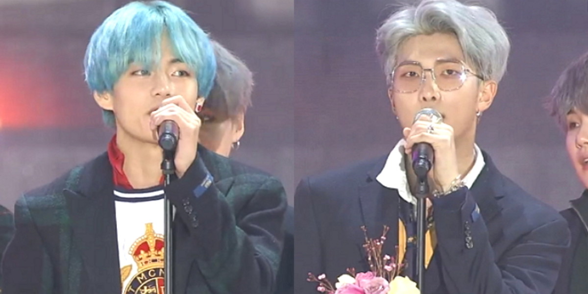 RM은 "우선 가수 일생에 단 한 번도 받기 어려운 받기 어려운 대상을 두 번이나 선사해주셔서, 전 세계 '아미' 분들에게 감사드립니다"라고 말했다.