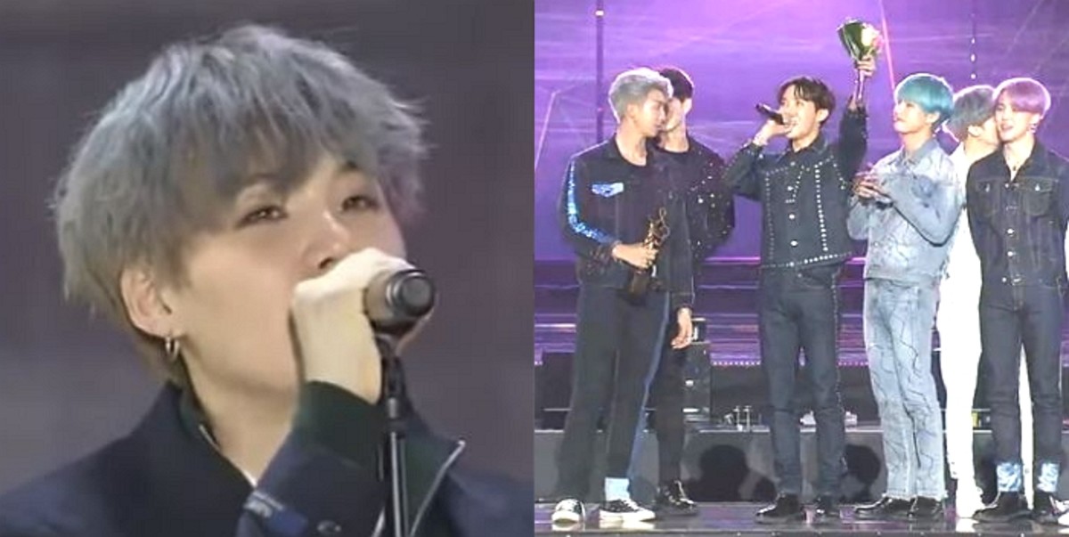 무대에 오른 방탄소년단은 리더 RM을 시작으로 각각 감사의 수상소감을 전했다.