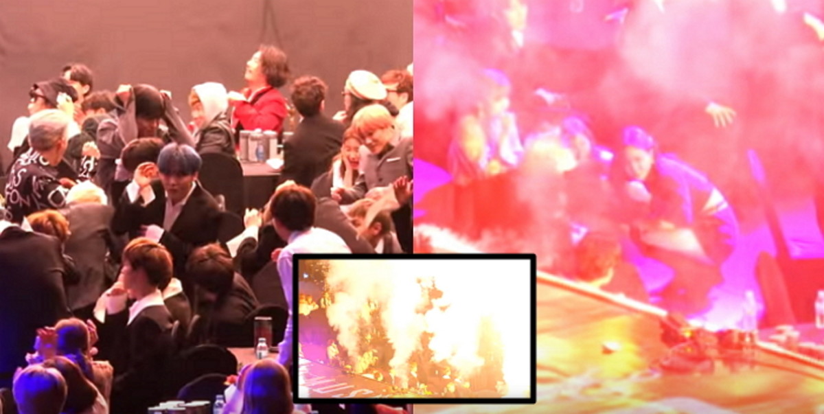 무대 위에 자리한 폭죽 장치는 바로 옆에 앉아있는 가수들이 위협을 느낄 만큼 크게 터졌다.