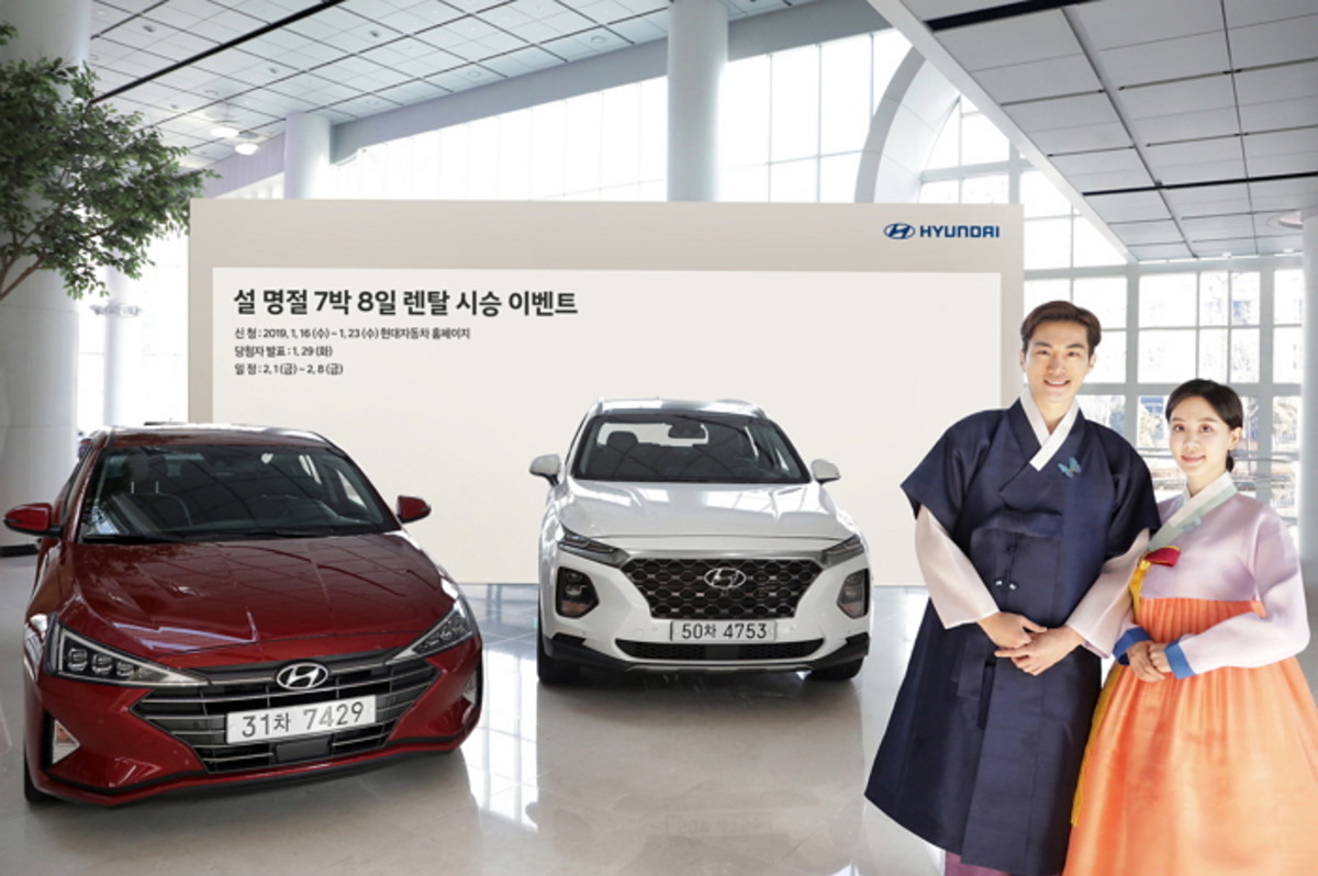현대차는 이벤트 당첨 고객을 대상으로 아반떼, i30, 벨로스터, 쏘나타, 그랜저, 코나, 투싼, 싼타페 등 250대의 차량을 설 연휴 기간인 2월 1일부터 8일까지 7박 8일간 무상으로 제공한다.