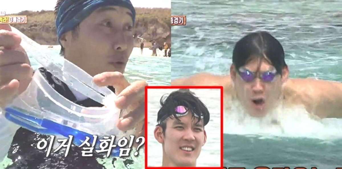 이날 박태환은 출연진들과 '3종 혼영', '상체만 사용', '개헤엄' 3종 수영 경기를 벌였다.