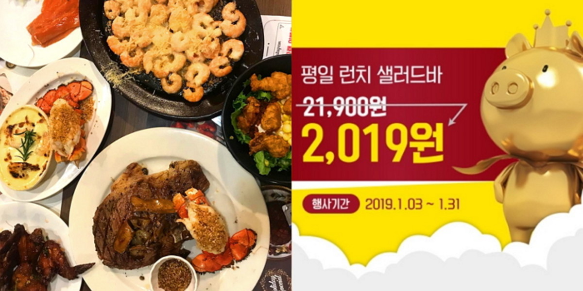 오는 31일까지 CJ푸드빌은 외식 브랜드 빕스(VIPS)의 평일 점심 샐러드바를 '2,019원'에 이용할 수 있는 행사를 진행한다.