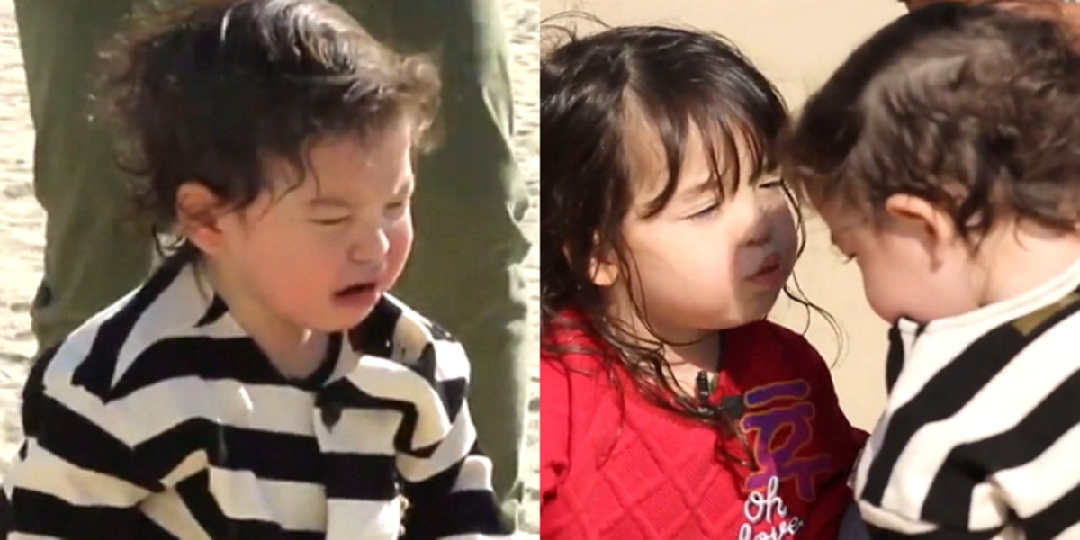 아무것도 모르고 주저앉아서 모래놀이를 즐기고 있던 건후는 모래를 그대로 맞아 버렸고, 예상치 못한 봉변에 서러워 눈물을 터뜨렸다.