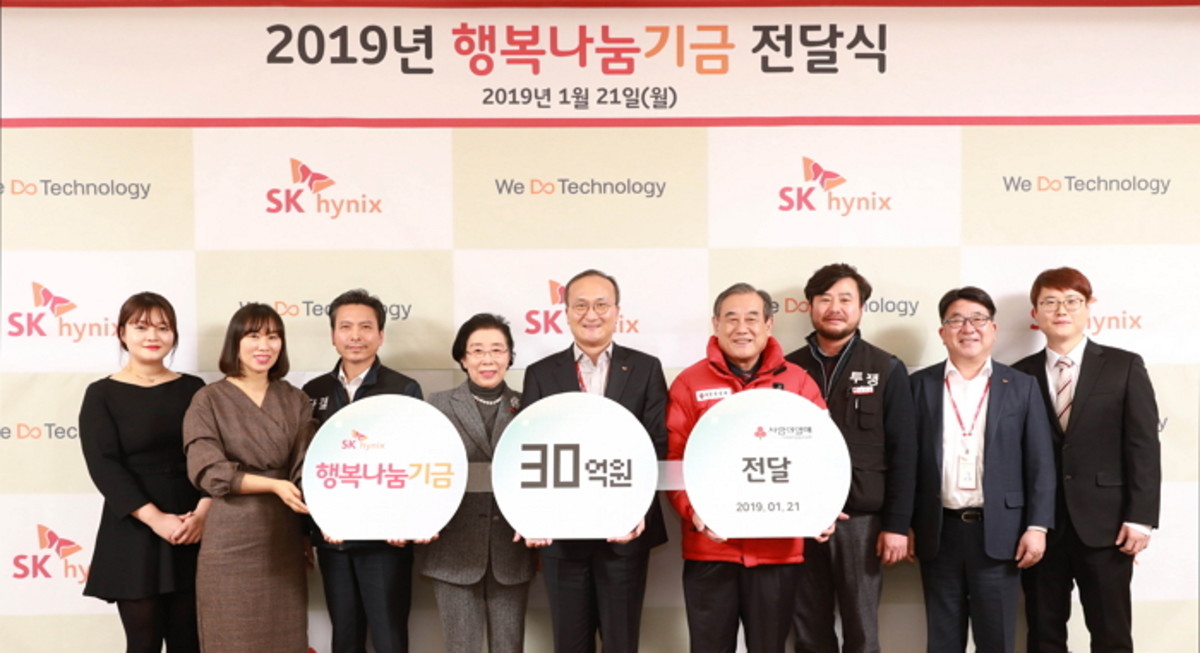 21일 SK하이닉스는 이날 경기도 이천 본사에서 임직원들의 참여로 조성한 '행복나눔기금' 30억원을 경기·충북 사회복지공동모금회에 전달했다고 밝혔다.