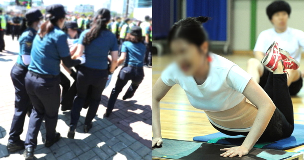 앞서 바닥에 무릎을 댄 채로 팔굽혀펴기를 했던 여성 응시생도 남성 응시생과 동일한 자세로 수행할 것으로 보인다.