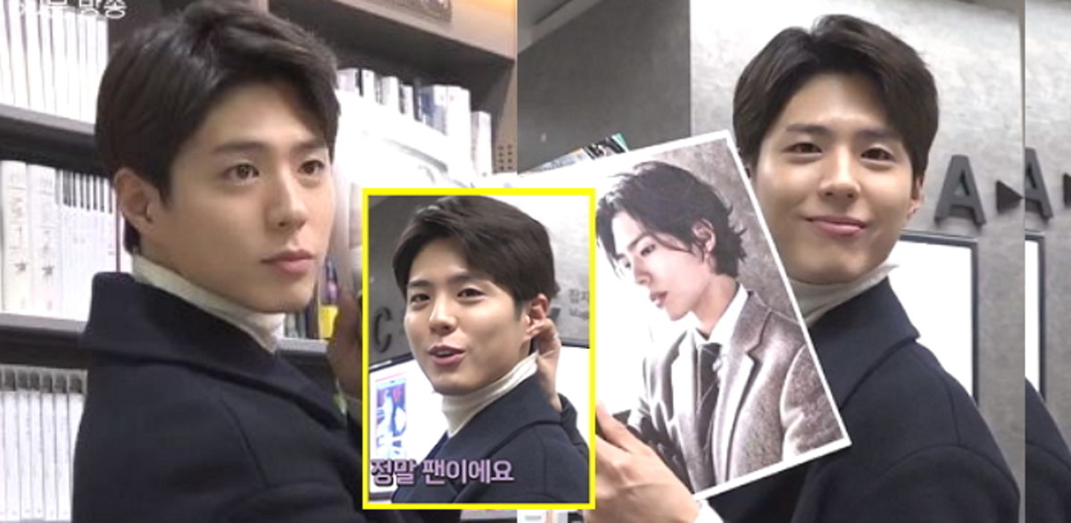 촬영에 앞서 여러 책을 둘러보던 박보검은 자신의 화보가 담긴 잡지를 우연히 발견했다.