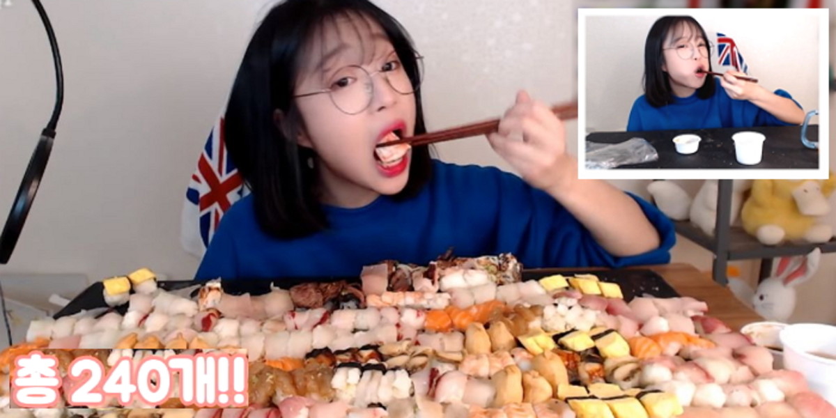 평범한 체구의 쯔양이 소화하기에는 어마어마한 양의 초밥이었지만, 그는 믿기지 않을 정도의 속도로 초밥을 흡입하기 시작했다.