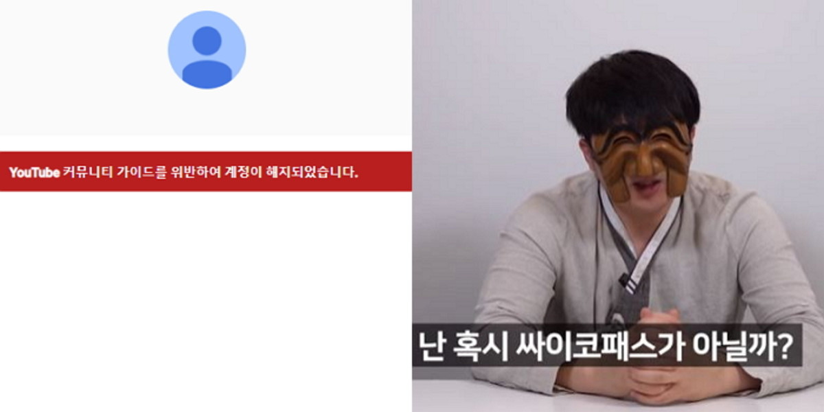 [인사이트] 전준강 기자 = 과거 천안함 용사·세월호 참사 희생자 모욕 등과 최근 한의사 집단 모욕으로 물의를 빚은 유튜버 '윾튜브'의 계정이 삭제됐다.