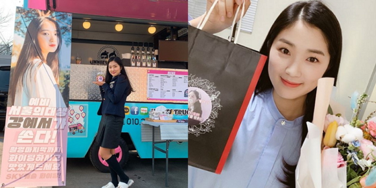 사진에는 '예비 서울 의대생 강예서가 쏜다. 촬영 마지막까지 파이팅 하시고 맛있게 드세요'라고 적힌 피켓도 눈에 띄었다.