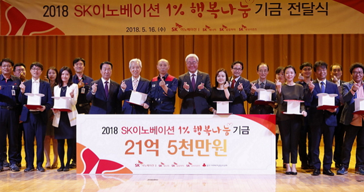 SK이노베이션은 '1% 행복나눔'이 구성원 자긍심을 높이는데도 크게 기여해 회사 성장을 위한 선순환이 되고 있다고 설명했다.