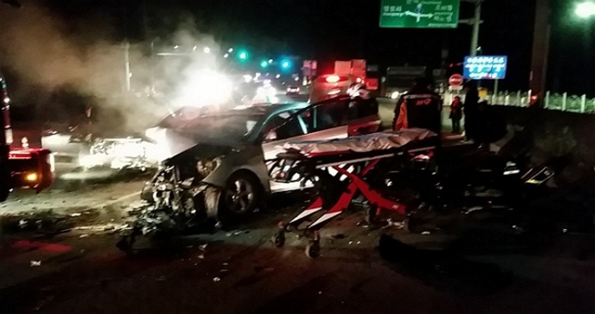 지난 24일 오후 8시 10분께 강원도 삼척시 오분동 남초등학교 인근 7번 국도 동해대로에서 덤프트럭과 K5 택시, 카니발 등 차량 3대가 추돌했다.
