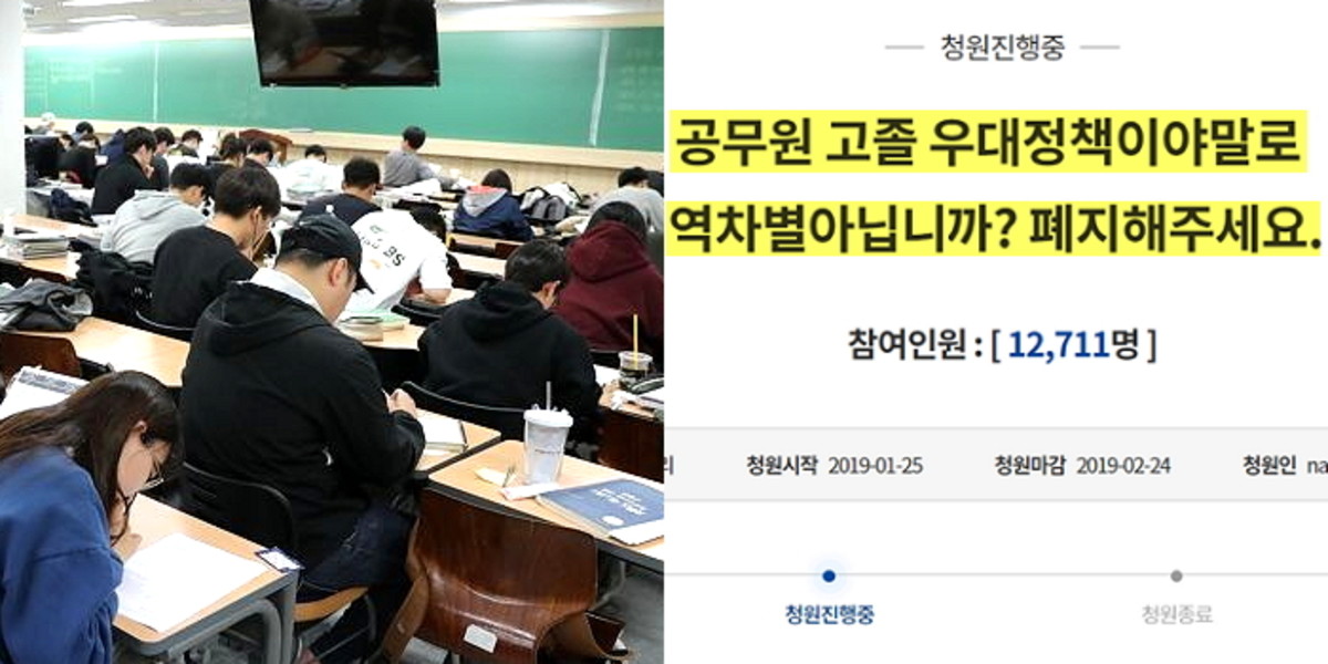 지난 25일 청와대 국민청원 게시판에는 "공무원 고졸 우대 정책이야말로 역차별 아닙니까? 폐지해주세요"라는 청원이 게재됐다.