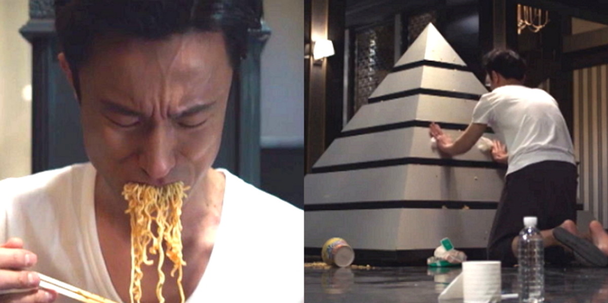 날아간 컵라면이 향한 곳은 그가 가장 아끼는 피라미드 모형이었다.