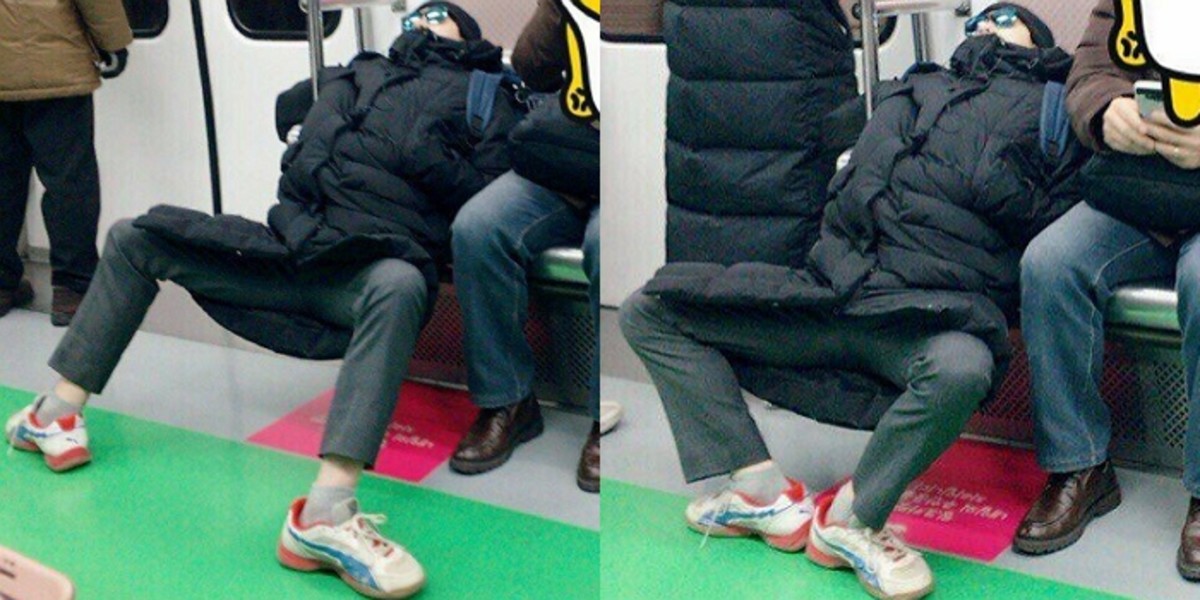 해당 사진 속 남성은 굉장히 괴상한 자세로 자리를 차지하고 있다. 상체를 좌석에 반쯤만 걸치고 있다고 표현하는 게 맞을 듯하다.