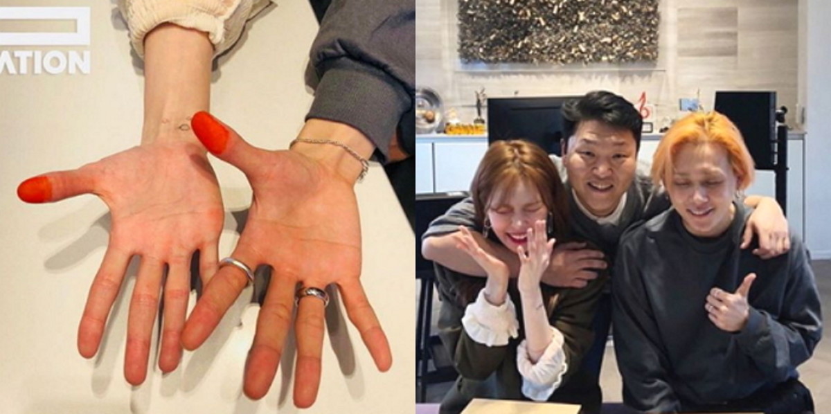 앞서 싸이는 현아와 이던이 계약서에 도장을 찍은 뒤 촬영한 듯한 두 사람의 손 사진도 공개한 바 있다.