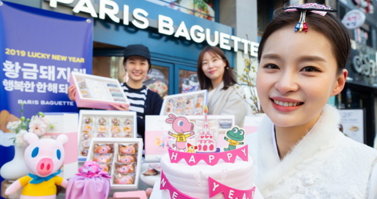 28일 파리바게뜨는 서울 종로구 파리바게뜨 카페대학로점에서 황금돼지의 해를 맞아 돼지 캐릭터 데이지가 주인공인 '굴리굴리 프렌즈'와 협업한 설 선물을 소개하는 사진행사를 가졌다.