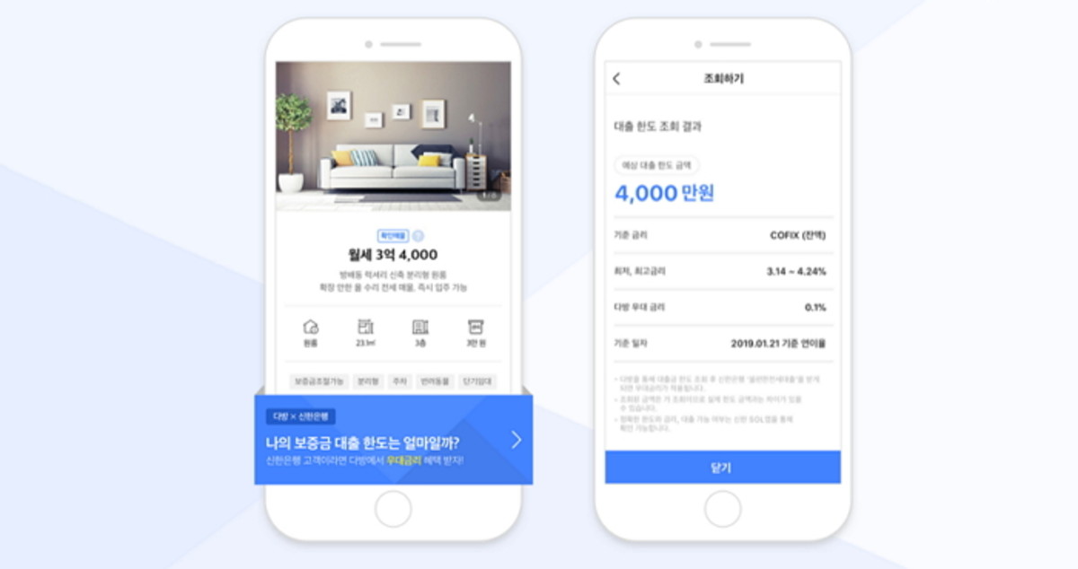 신한은행, 오픈형 부동산 중개 플랫폼 다방과 협업 매물 정보 입력 없이 한도 확인 및 대출 신청 가능