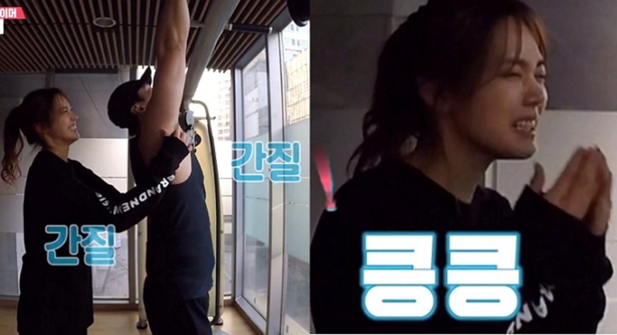 이날 방송에서 라이머는 팔과 어깨 운동을 하기 위해 봉에 매달리는 동작을 시작했다.