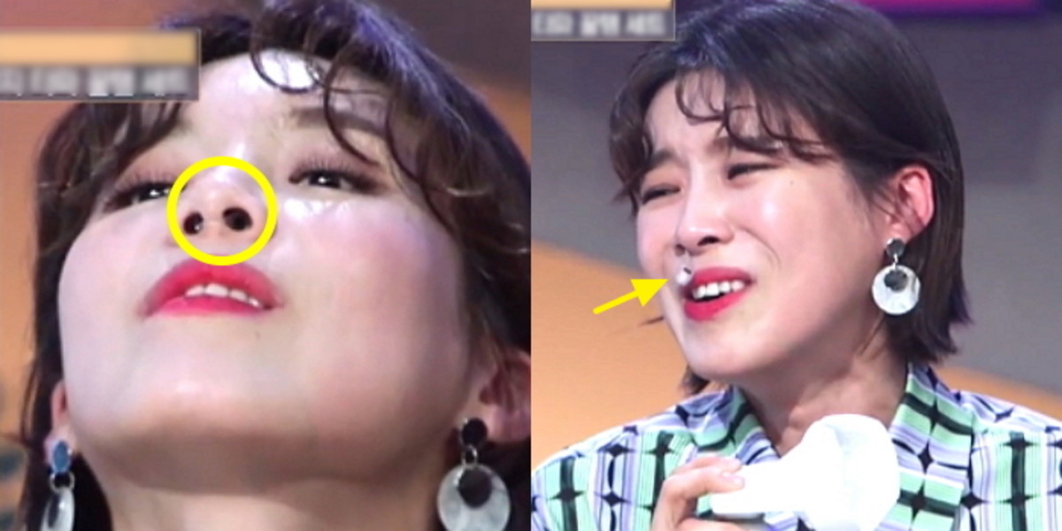 장도연은 비장한 표정으로 콧구멍에 코 마스크를 착용했다.