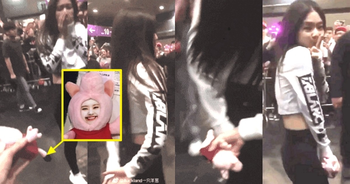 때를 놓치지 않고 팬은 제니의 손에 인형을 쥐여줬고, 무사히 전달받은 제니는 손가락으로 '쉿' 표시를 하며 팬에게 애교까지 부렸다.