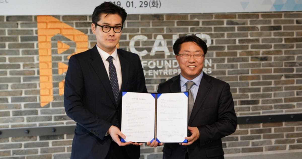 고정욱 핏펫 대표와 이창수 DB손해보험 법인마케팅 팀장이 MOU 체결하는 모습 / 사진제공 = 핏펫
