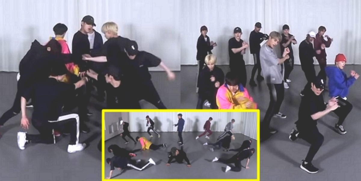 공개된 영상 속 세븐틴 멤버들은 어두운 계열의 트레이닝 복을 입고 등장했다.