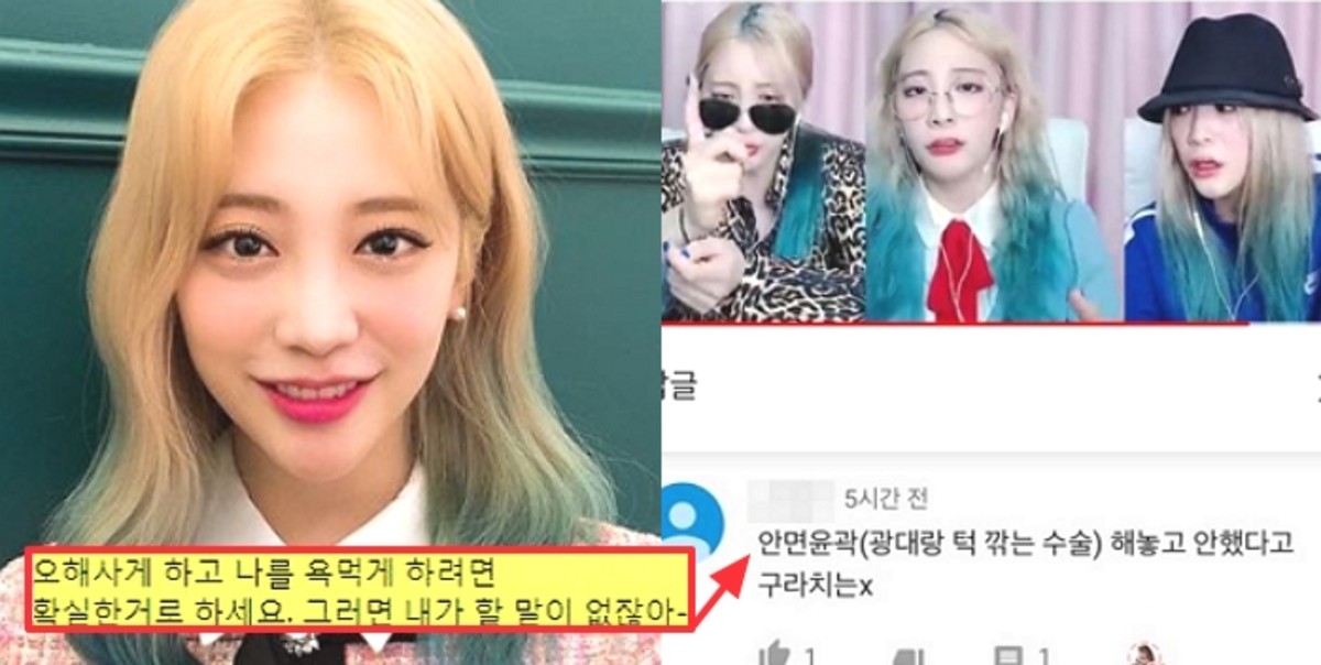 이 시청자는 "안면윤곽(광대랑 턱 깎는 수술) 해놓고 안 했다고 구라 치는 X"라며 공개적으로 최예슬을 저격했다.