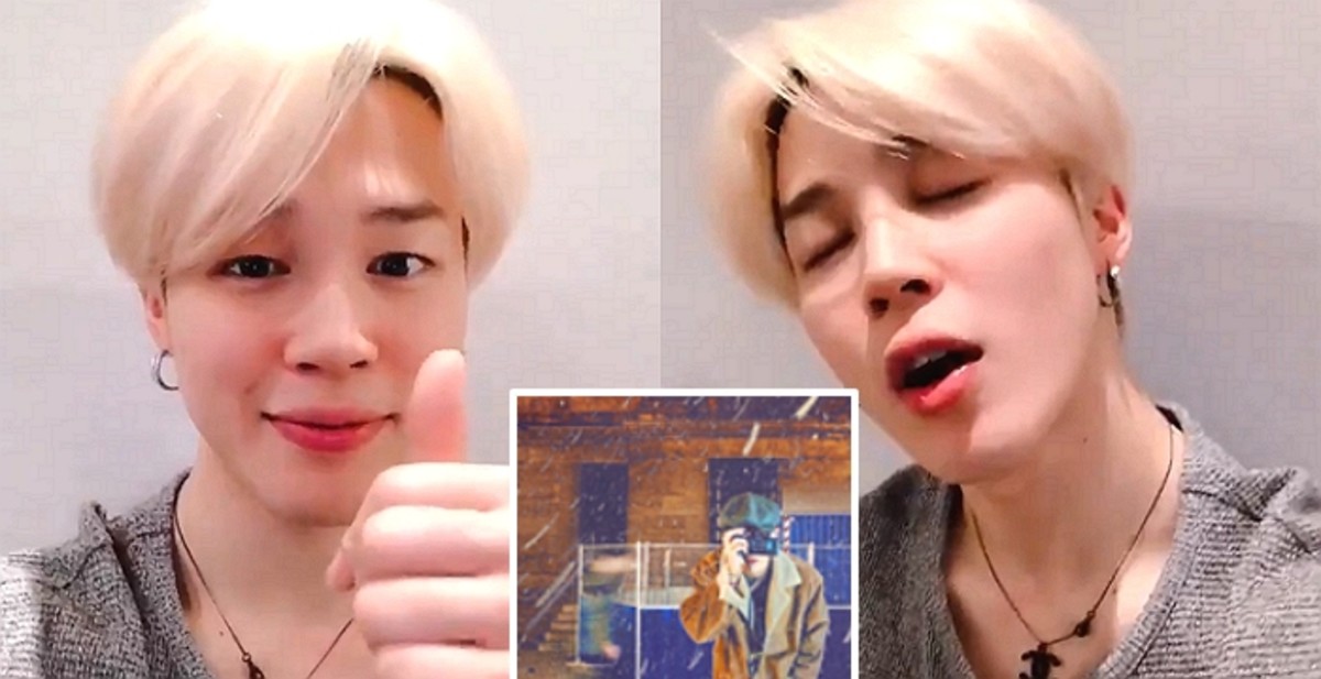 게재된 영상 속에는 뷔의 자작곡 '풍경'을 립싱크하고 있는 지민의 모습이 담겼다.
