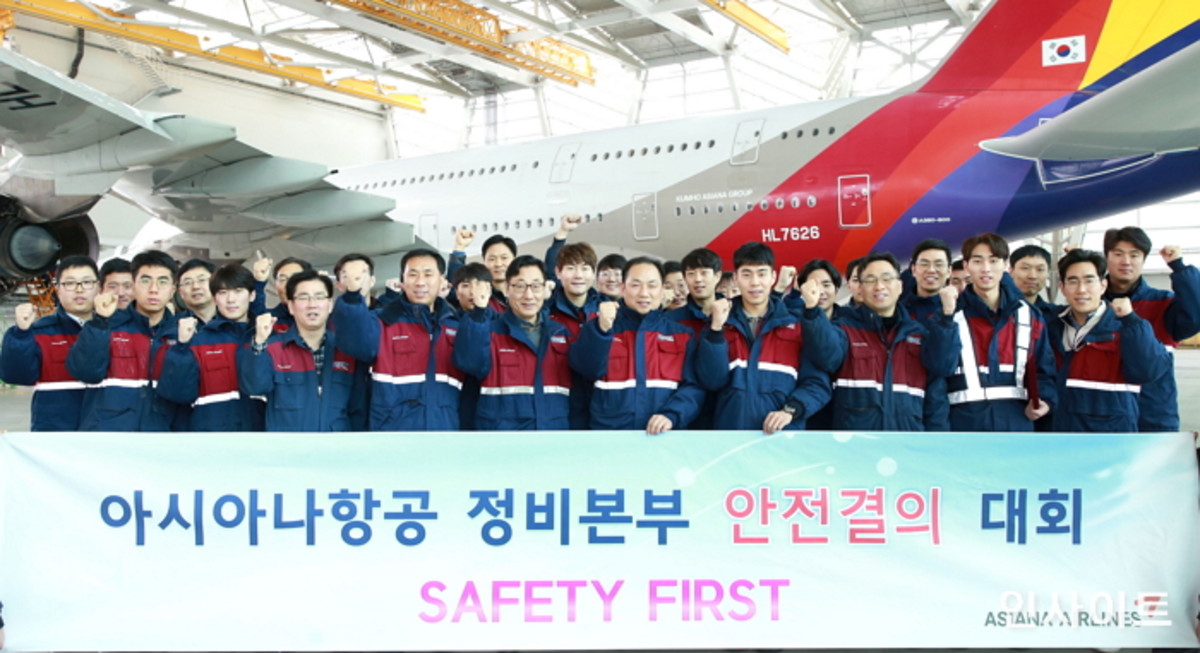 1일 아시아나항공은 전날 인천국제공항 제2격납고에서 장영일 아시아나항공 정비본부장과 정비본부 임직원 등 총 120여명이 참석한 가운데 정비본부 '안전결의 대회'를 가졌다고 밝혔다.