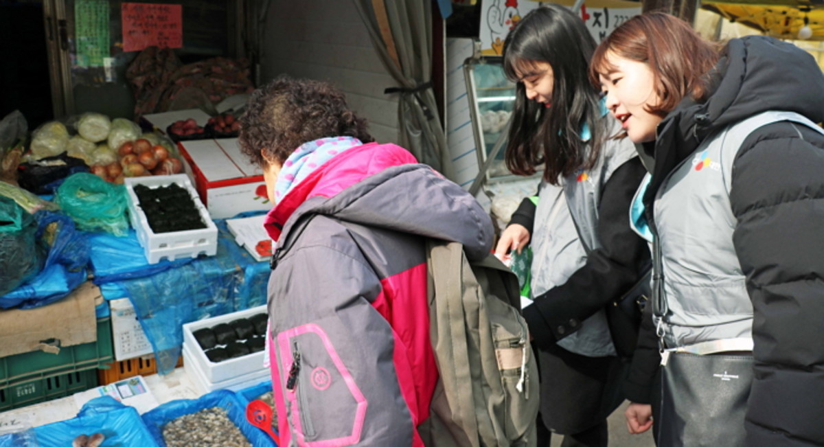 또한 어르신들과 시장을 둘러보며 새해맞이 덕담을 나누며 즐거운 시간을 보냈다. 장보기를 끝마친 봉사자들은 몸이 불편한 어르신들을 대신해 시장에서 구매한 무거운 물건들을 댁까지 직접 가져다드렸다.