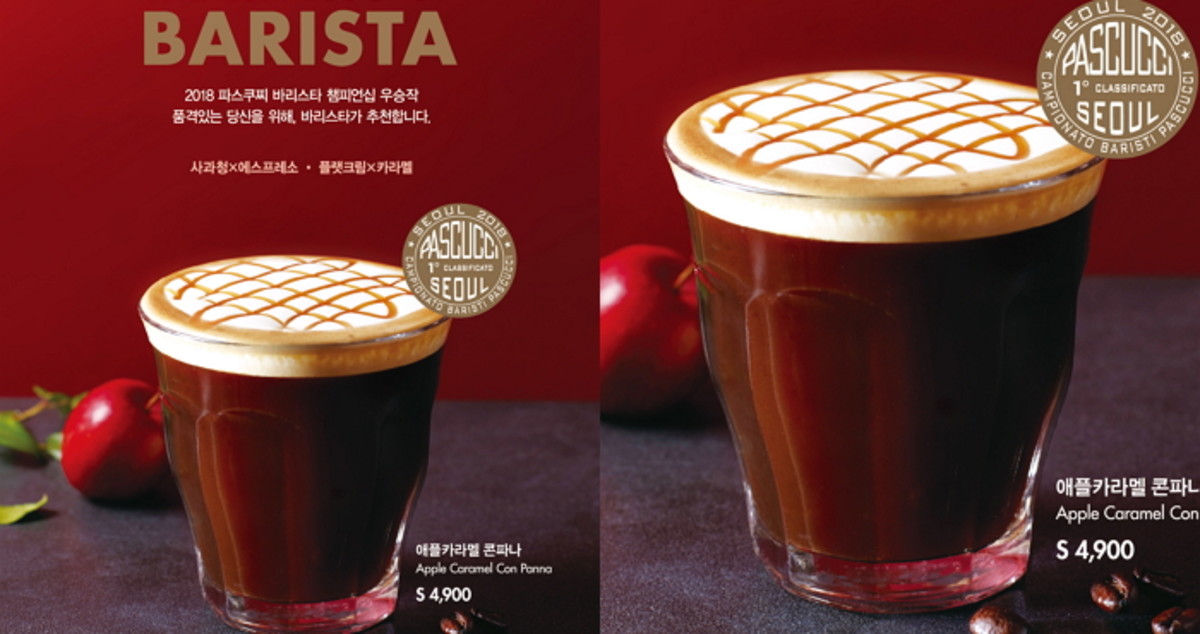 이번에 출시한 우승 음료 '애플 카라멜 콘파나'의 콘셉트는 '단맛과 신맛의 환상적인 밸런스'로, 파스쿠찌 바리스타 챔피언십 우승자의 개성과 노하우가 접목이 된 제품이다.