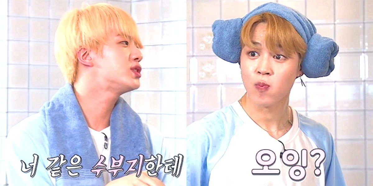 진과 제이홉도 대결을 펼쳤다. '이거 생선(생일 선물)이야! 초크초크(촉촉)하니까 너 같은 수부지(수분 부족 지성)한테 좋을걸?'이라는 문제였다.