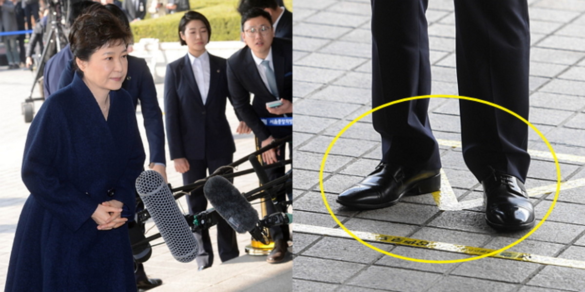 검찰 포토라인에 선 박근혜 전 대통령의 모습 / 뉴스1