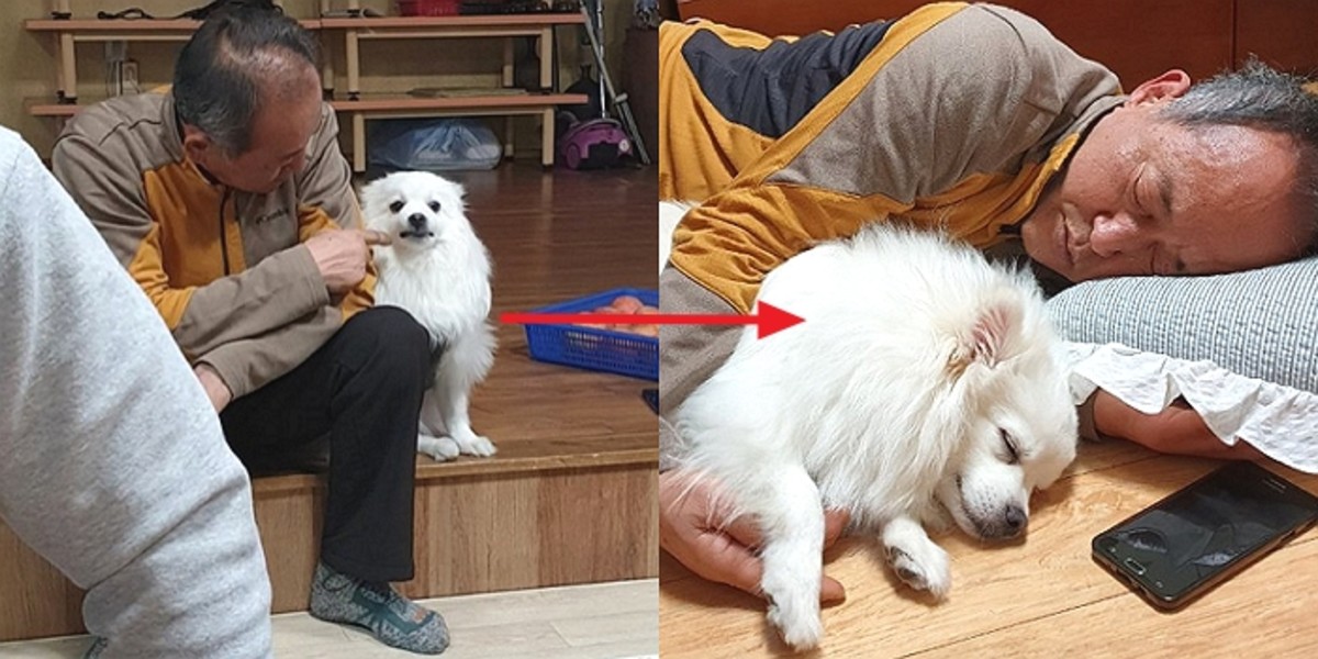 처음엔 강아지를 어색해하고 당황해하던 아버지는 강아지를 쓱 찔러도 보고 털을 만졌다. 또 자신의 옆을 졸졸 따라다니는 강아지가 싫지 않은지 옆에 딱 붙어 장난을 치기도 했다.