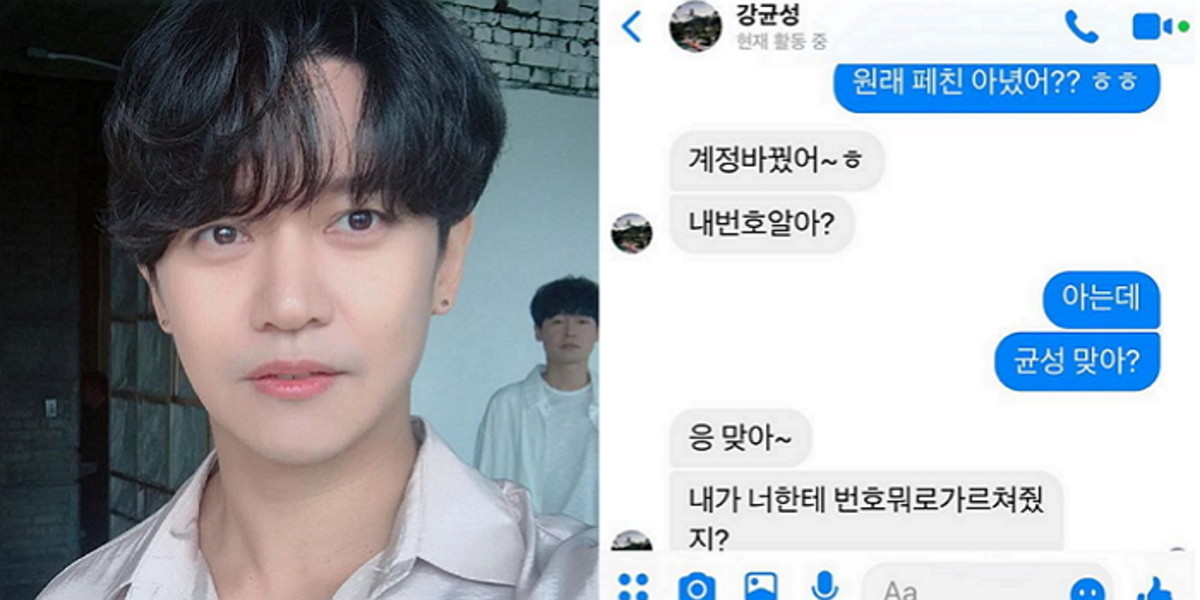해당 캡처에서는 강균성을 사칭한 사람이 지인에게 접근해 연락처를 알아내려고 시도하는 모습을 확인할 수 있다.