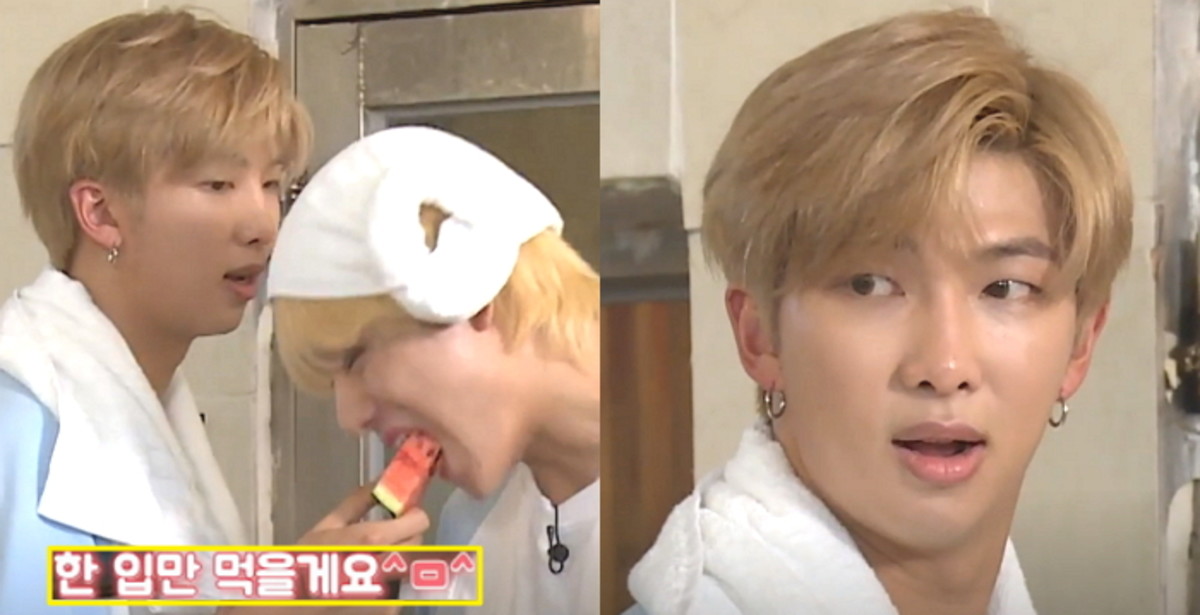 한 입만 먹겠다더니 수박을 없애(?)버린 뷔의 모습에 RM은 그저 허망한 표정을 지을 뿐이었다.