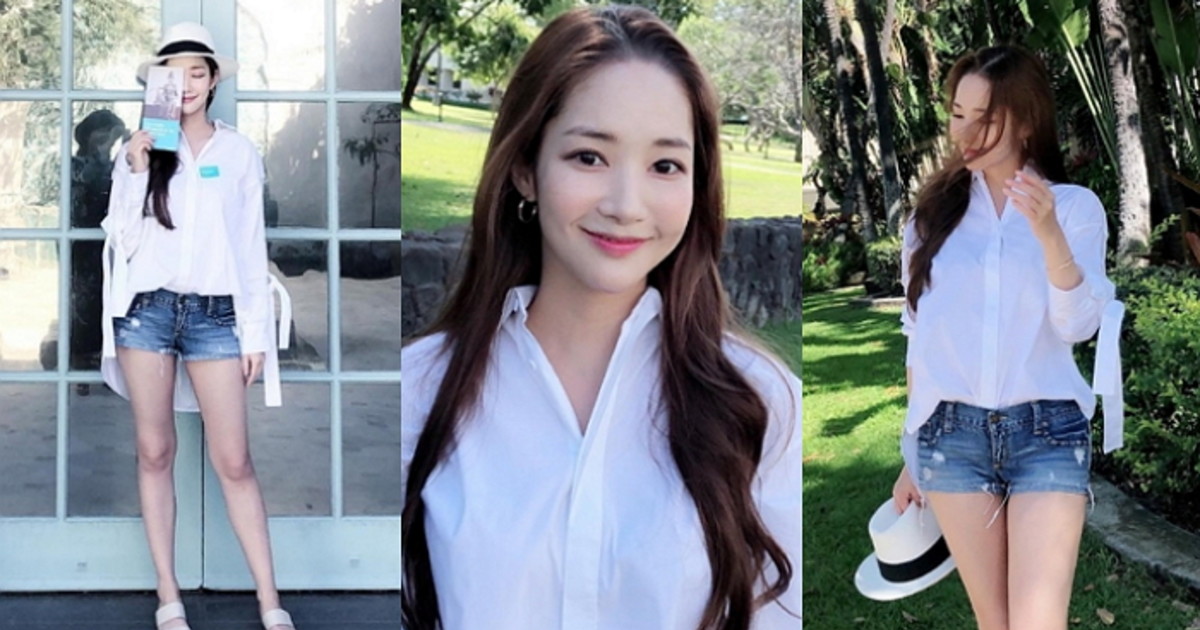 공개된 사진 속 박민영은 한 공원에서 인형 같은 미모를 자랑하고 있다.