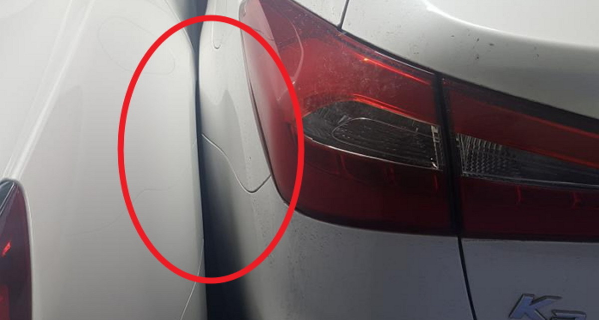 종이 한 장 겨우 들어갈 정도의 간격만을 남긴 채 해당 차량 옆으로 바싹 붙여 주차한 것이다.