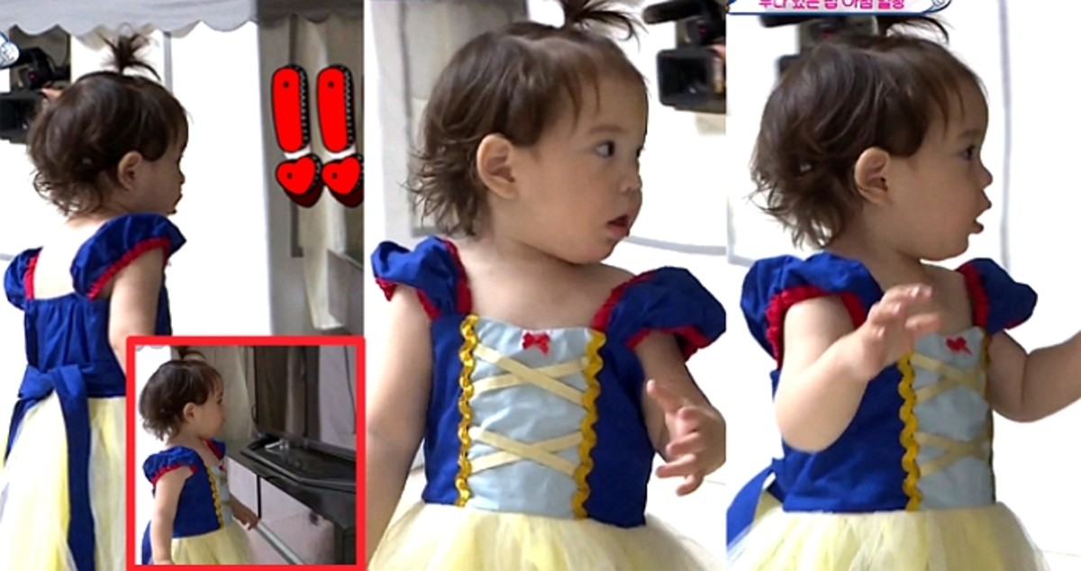 이 때 건후는 나은이의 손에 들려있던 백설공주 옷을 보고 위험을 감지한 듯 슬쩍 뒷걸음질 쳤다.