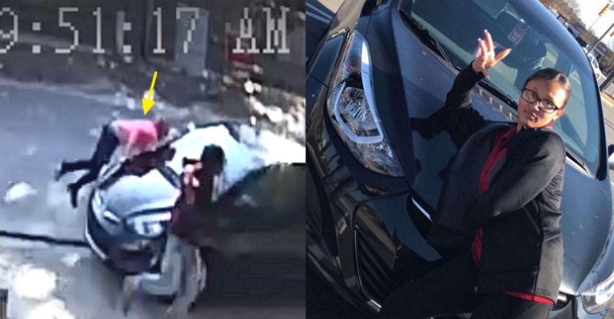 상황을 일찍 눈치챈 남성은 다행히 몸을 피했으나 여성은 그대로 차와 충돌하며 바닥에 쓰러졌다.