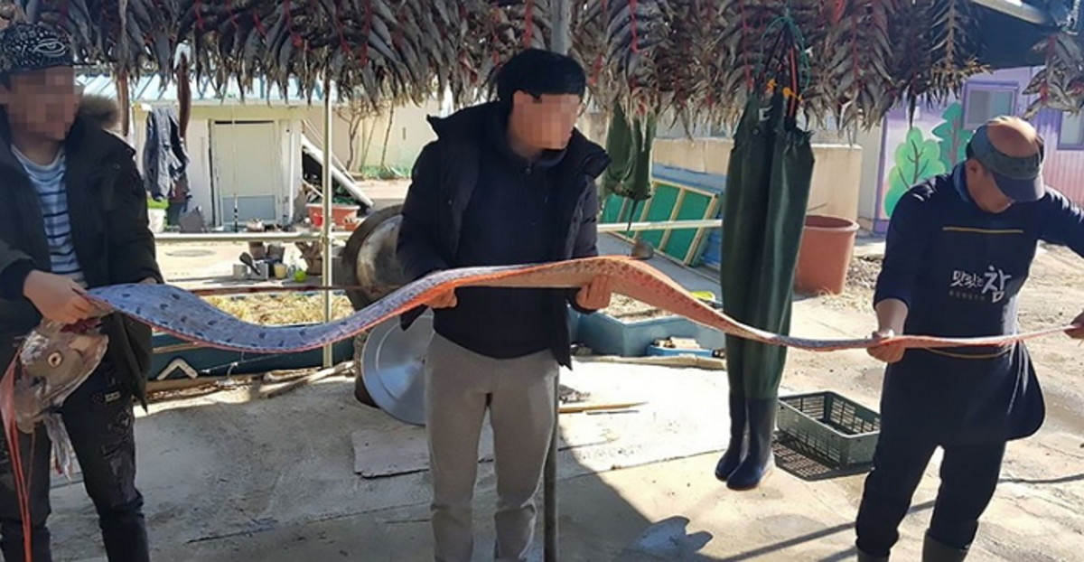지난달 27일 경북 포항시 북구 흥해읍 죽천리 해안에서는 3m 80cm 길이의 산갈치가 포획됐다.