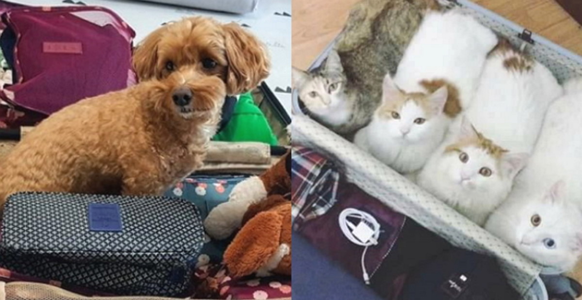 촉촉한 눈망울로 여행 가방에 쏙 들어가 주인의 마음을 흔들어 놓는 댕댕이와 냥냥이. 녀석들의 귀여운 행동이 누리꾼의 마음마저 훔치고 있다.