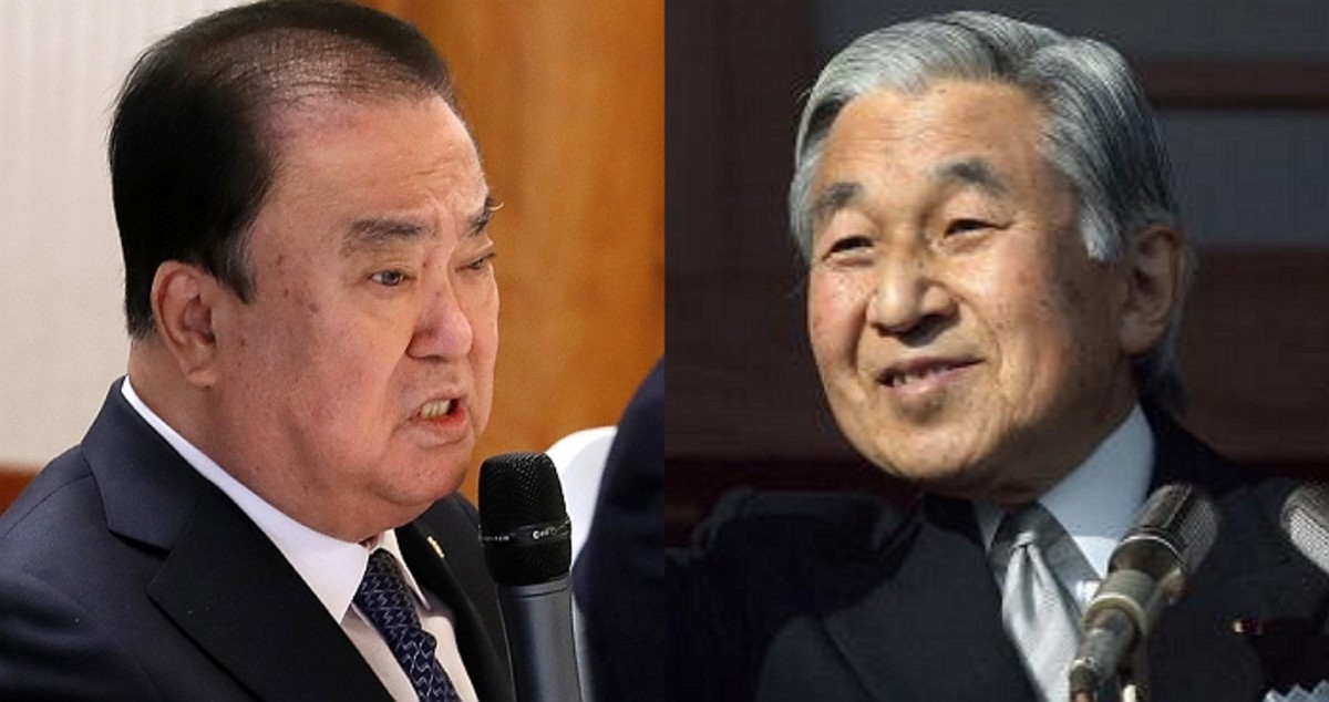 지난 8일 블룸버그통신은 문 의장이 아키히토 일왕을 "전쟁범죄 주범의 아들"이라고 칭했다고 전했다.