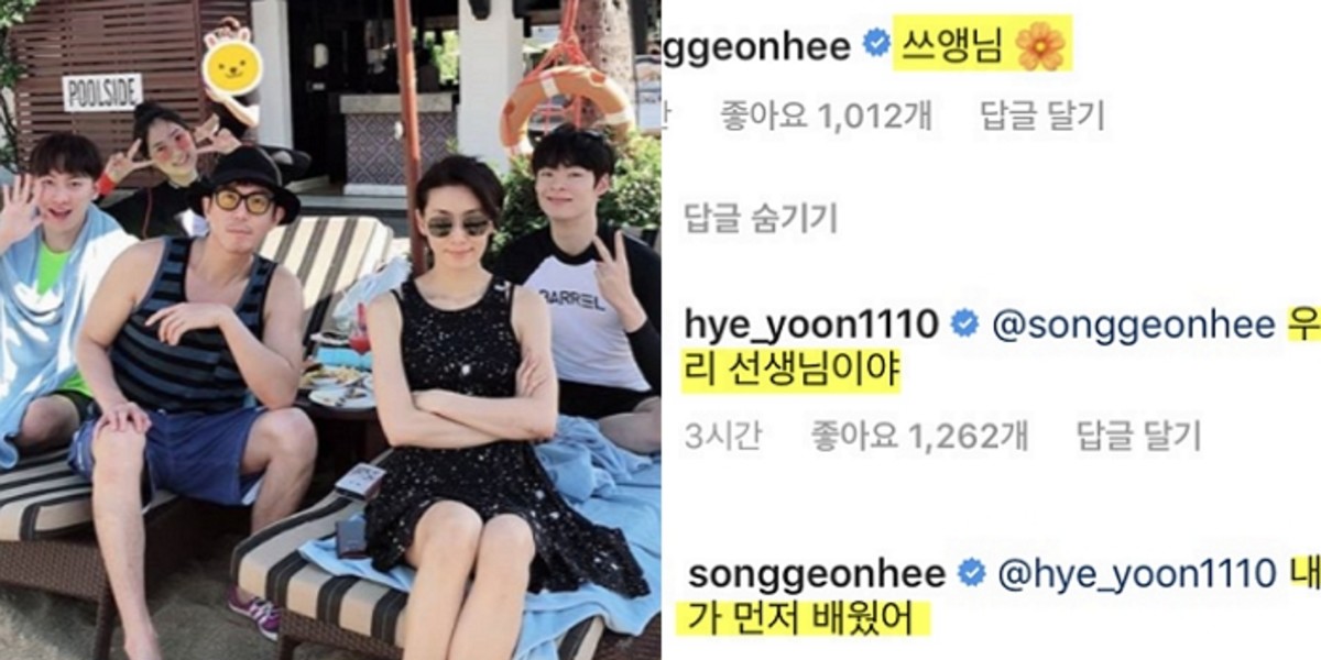 해당 게시물이 업로드되자 송건희는 "쓰앵님"이라는 댓글과 분홍색 꽃 모양의 이모티콘을 달며 넘치는 애정을 뽐냈다.